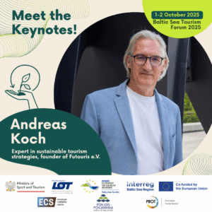 We are proud to announce that Andreas Koch – coach, consultant for sustainable tourism, keynote speaker, trainer for destinations and hotels, and founder of tourythm & Futouris e.V. – will provide the opening keynote to the BalticSeaTourismForum2025 together with Anna Pollock.