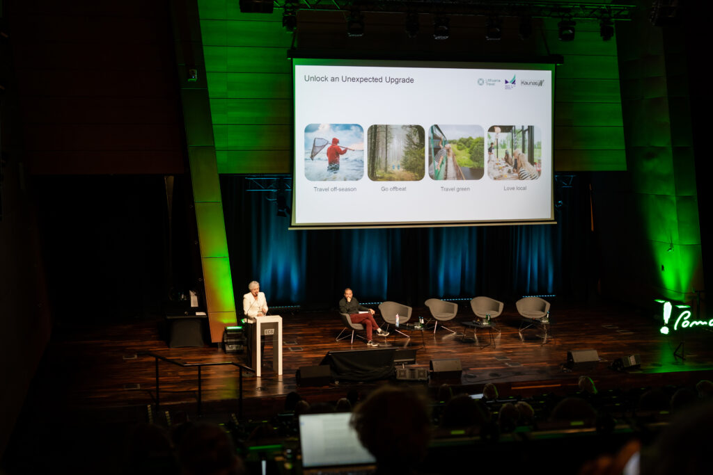 Lidija Bajarūnienė, Olga Gončarova and Tadas Stankevičius presented Lithuania’s Living Strategy model — a pioneering two-way cooperation between the ministry, NTO, and local DMOs.