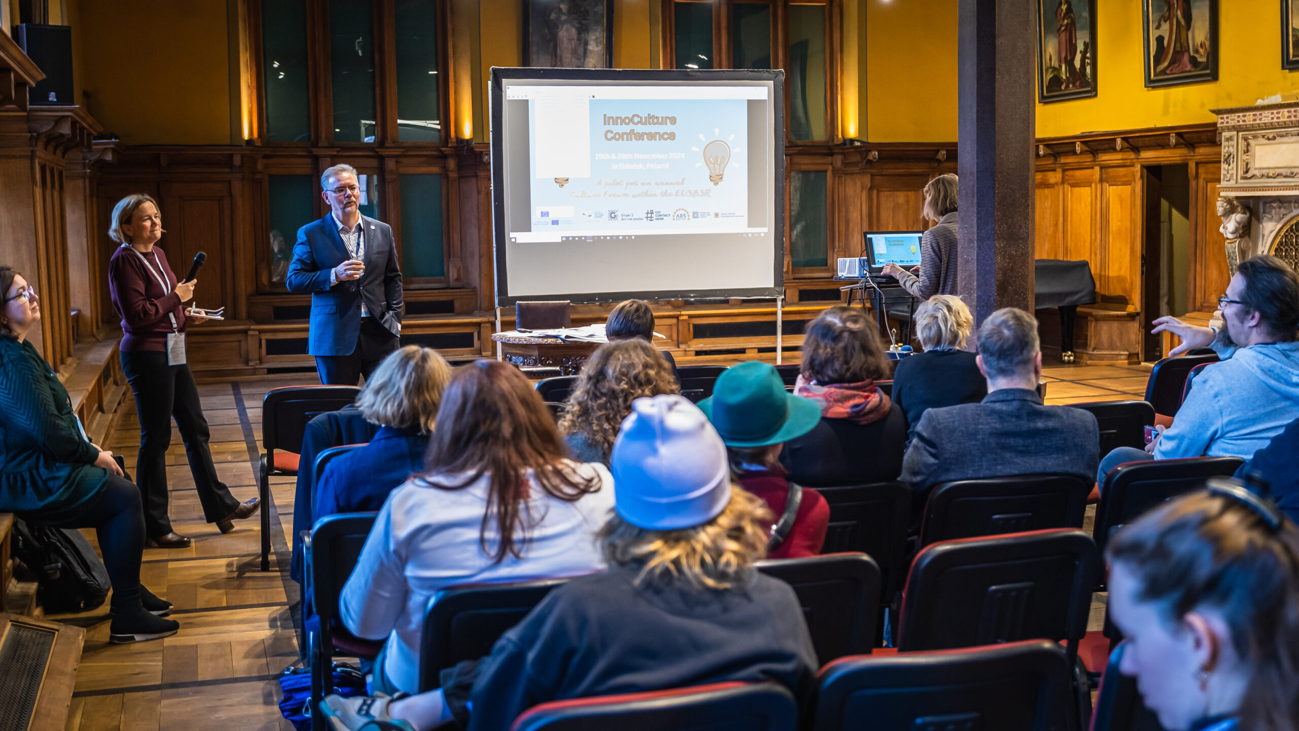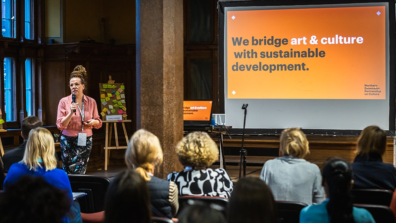 The InnoCulture Conference was hosted as a lunch-to-lunch event at the Baltic Sea Cultural Centre in Gdańsk, Poland. After exploring the city voluntarily on guided walks around the old town and shipyard, this history-rich event location began buzzing with life as the over 60 participants started arriving and networking over delicious food. The conference programme commenced at noon with a so-called ‘Speed Networking’ lead by ARS BALTICA allowing people to meet new acquaintances and get the innovative mindset flowing. Following this warm-up, Kaarina Williams, Senior Adviser for Baltic Sea Region Affairs at the Ministry for European Affairs of Land Schleswig-Holstein, one of the two Policy Area Culture coordinator institutions, moderated the event and therefore welcomed everyone warmly to Gdańsk and the conference at whole. After the introduction of all event organizers, namely Policy Area (PA) Culture, Baltic Sea Cultural Centre, ARS BALTICA, and CCI Contact Desk, Goyki 3 Art Inkubator, it was already time for the two keynote speakers of the day to give their inspirational input.